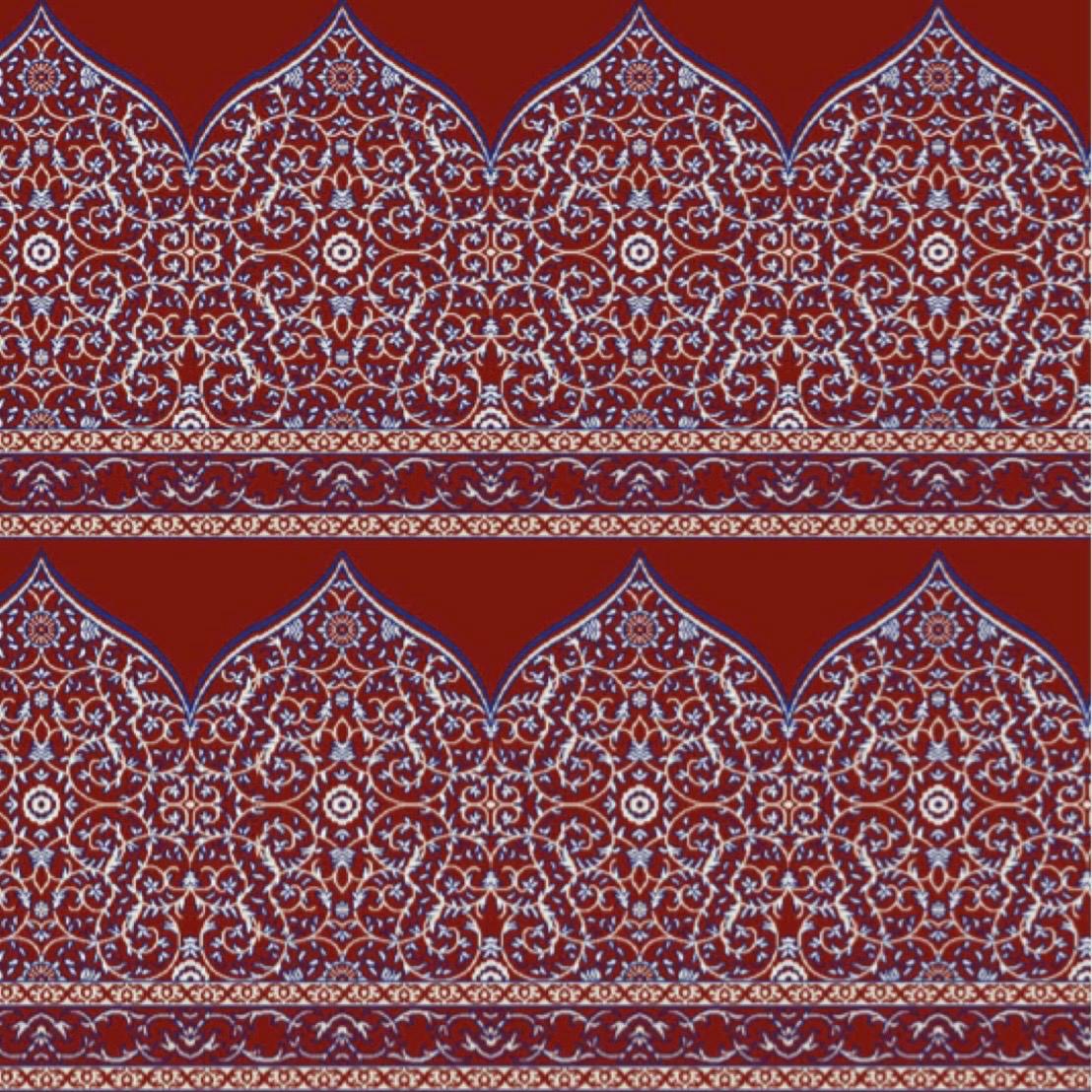 A pile height of 10.5 mm delivers comfortable support during prostration and sitting, while enabling easy cleaning and routine maintenance. Its classic mihrab-inspired design and balanced color options make it suitable for various mosque environments.